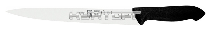 Нож для мяса ICEL Horeca Prime Carving knife 28100.HR14000.300 оснащен эргономичной ручкой черного цвета из приятного на ощупь пластика Proflex, устойчивого к высоким температурам и воздействию агрессивных элементов, и заточенным вручную лезвием, выполненным из высококачественной нержавеющей стали X50CrMoV15 с добавлением хрома, молибдена и ванадия. Твердость стали, закаленной по специальной технологии, составляет более 56 HRC. Ручка, изготовленная по системе инжекции, имеет специальную антибактериальную защиту Microban.