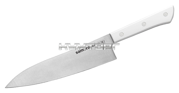 Японский кухонный нож Samura Harakiri Harakiri SHR-0096W предназначен для нарезки различных продуктов на предприятиях общественного питания и торговли, в частных домах и квартирах. Шеф-нож имеет широкие функциональные возможности. Лезвие выполнено из коррозионно-стойкой однослойной стали AUS-8, ручка - из ABS-пластика.