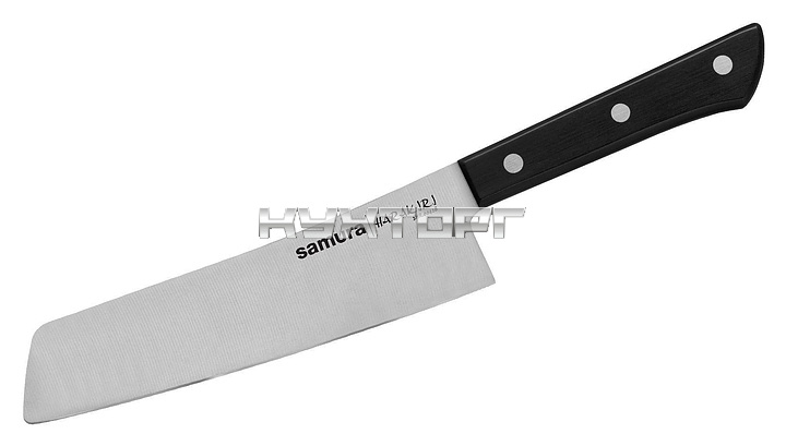 Японский кухонный нож Samura Harakiri SHR-0042B предназначен для нарезки различных продуктов на предприятиях общественного питания и торговли, в частных домах и квартирах. Лезвие выполнено из коррозионно-стойкой однослойной стали AUS-8, ручка - из ABS-пластика.
