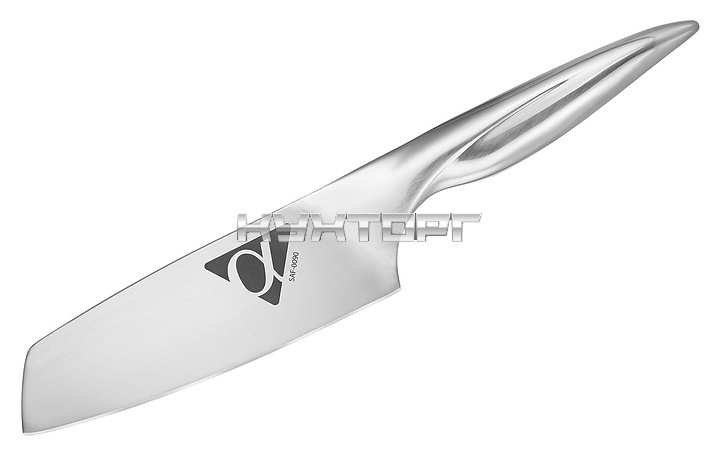 Японский кухонный нож Samura Alfa Alfa SAF-0090 предназначен для мелкой шинковки, нарезки и крошения овощей и зелени на предприятиях общественного питания и торговли, в частных домах и квартирах. Лезвие выполнено из коррозионно-стойкой однослойной стали AUS-10, ручка - из стали.