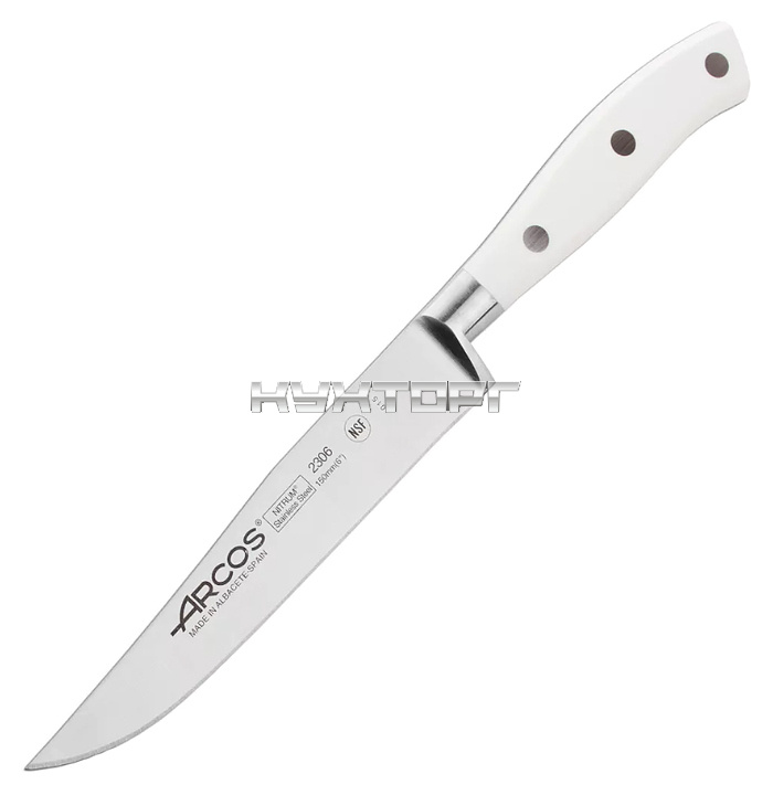 Универсальный нож ARCOS Riviera Blanca 230624W используется на предприятиях общественного питания и торговли, а также в частных домах и квартирах. Кованое лезвие изготовлено из высококачественной нержавеющей стали NITRUM, эргономичная ручка - __из полиоксиметилена.