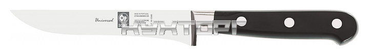 Разделочный нож ICEL Universal Boning knife 27100.UN06000.130 оснащен эргономичной ручкой черного цвета из полиоксиметилена, устойчивого к высоким температурам, и заточенным вручную лезвием, выполненным из высококачественной нержавеющей стали X50CrMoV15 с добавлением хрома, молибдена и ванадия. Изделие выполнено методом ковки. Твердость стали, закаленной по специальной технологии, составляет более 56 HRC. Лезвие соединено с ручкой посредством заклепок из нержавеющей стали.