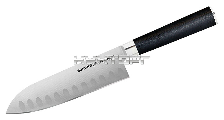 Нож Сантоку Samura Mo-V SM-0094 предназначен для рубки, нарезки и шинковки различных продуктов на предприятиях общественного питания и торговли, в частных домах и квартирах. Лезвие выполнено из нержавеющей коррозионно-стойкой однослойной молибден-ванадиевой стали AUS-8, ручка - из стеклоткани G-10.