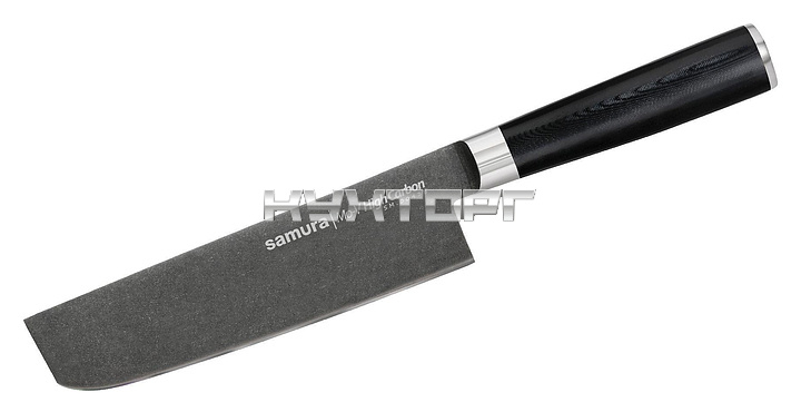 Нож накири Samura Mo-V Stonewash SM-0043B предназначен для мелкой шинковки, нарезки и крошения овощей и зелени на предприятиях общественного питания и торговли, в частных домах и квартирах. Лезвие выполнено из коррозионно-стойкой однослойной стали AUS-8 и имеют матовую грубую поверхность благодаря обработке методом галтовки, ручка - из стеклоткани G -10.