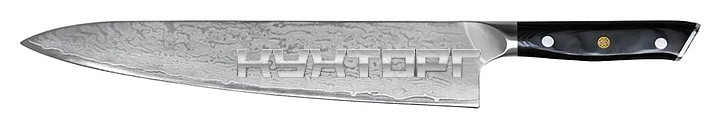 Шеф-нож P.L. Proff Cuisine Premium 99005059 используется на предприятиях общественного питания и торговли, в частных домах и квартирах для нарезки овощей, зелени, курицы, больших кусков мяса и рыбы. Лезвие изготовлено из дамасской стали, рукоять - из высокопрочного стеклопластика.