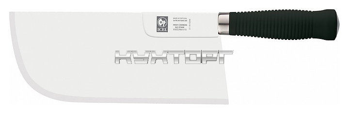 Нож для рубки ICEL Tradition Cleaver 34100.4072000.260 оснащен эргономичной ручкой черного цвета из приятного на ощупь пластика Proflex, устойчивого к высоким температурам и воздействию агрессивных элементов, и заточенным вручную лезвием, выполненным из высококачественной нержавеющей стали X50CrMoV15 с добавлением хрома, молибдена и ванадия. Твердость стали, закаленной по специальной технологии, составляет более 56 HRC. Ручка, изготовленная по системе инжекции, имеет специальную антибактериальную защиту Microban.