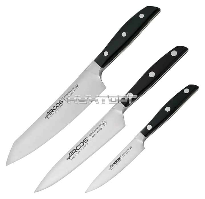 Набор ножей ARCOS Manhattan 858100 используется на предприятиях общественного питания и торговли, а также в частных домах и квартирах. Кованые лезвия изготовлены из сатинированной высококачественной нержавеющей стали NITRUM, эргономичные ручки - __из полиоксиметилена.