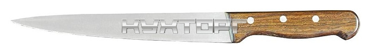 Филейный нож P.L. Proff Cuisine Wood 99005035 используется на предприятиях общественного питания и торговли, в частных домах и квартирах для тонкой нарезки и филирования рыбы или мяса. Лезвие изготовлено из штампованной хромо-углеродистой стали, рукоять - из прессованного дерева.