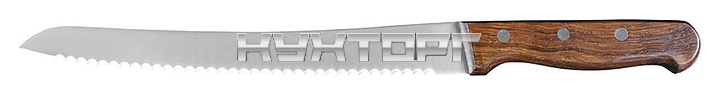 Нож P.L. Proff Cuisine Wood 99005037 используется на предприятиях общественного питания и торговли, в частных домах и квартирах для нарезки хлеба, сдобы и других хлебобулочных изделий. Лезвие изготовлено из штампованной хромо-углеродистой стали, рукоять - из прессованного дерева.