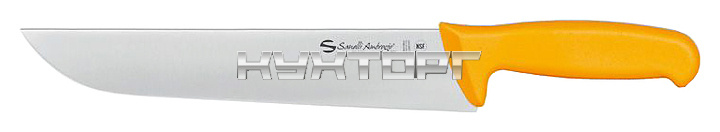Нож Sanelli Ambrogio 6309026 серии Supra Colore предназначен для нарезки предварительно приготовленного мяса и курицы на предприятиях общественного питания и торговли, а также в частных домах и квартирах. Модель оснащена лезвием с напечатанным лазером логотипом с кодом продукта и номером партии. Система цветового кодирования ножей с присвоением каждому цвету определенной задачи облегчает работу на кухне и позволяет снизить риск перекрестного заражения. Изделие выполнено из высокопрочной коррозионностойкой нержавеющей стали NITRO-B, обогащенной азотом, углеродом, хромом, молибденом и ванадием, внутренняя часть ручки - из полипропилена, внешняя часть ручки - из SEBS с микросферами, повышающими противоскользящие свойства.