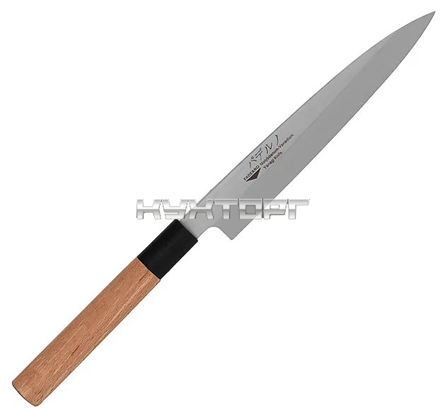 Шеф-нож Paderno 18284-21 используется на предприятиях общественного питания и торговли, в частных домах и квартирах для нарезки свежей рыбы и морепродуктов. Лезвие выполнено из нержавеющей стали, рукоятка - из бука.