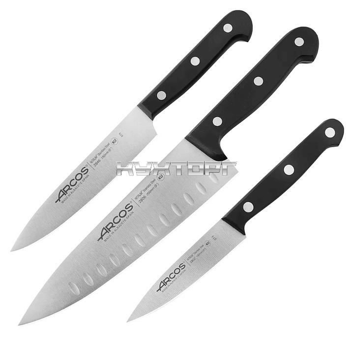 Набор ножей ARCOS Universal 807410 используется на предприятиях общественного питания и торговли, а также в частных домах и квартирах. Лезвия изготовлены из высококачественной нержавеющей стали NITRUM, эргономичные ручки - __из полиоксиметилена.