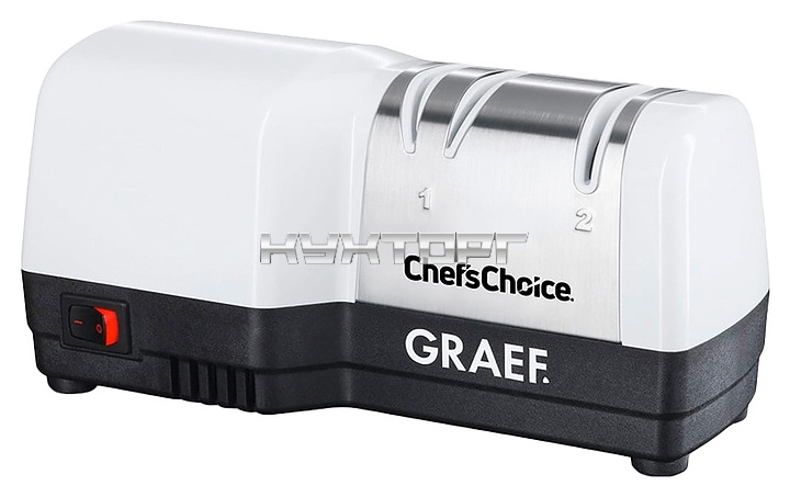 Гибридная ножеточка Graef CC 80 ChefsChoice серии Young Line используется на предприятиях общественного питания и в домашних условиях для поддержания в рабочем состоянии металлических лезвий ножей различных видов с гладкой и серрейторной кромкой. Модель оснащена 3 шлифовальными слотами для поочередной обработки левого и правого краев, выключателем колыбельного типа с индикатором состояния и кабелем питания с вилкой. Корпус прямоугольно ориентированной формы выполнен из прочного пластика белого цвета с черным основанием, абразивные диски – из стали с покрытием алмазной крошкой.