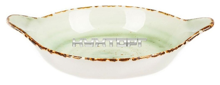 Блюдо_ P.L. Proff Cuisine Organica Green TX0270-H275 предназначено для сервировки стола на предприятиях общественного питания и в домашних условиях. Модель круглого сечения оснащена 2 рукоятками. Изделие выполнено из фарфора с внешней поверхностью белого цвета, коричневым кантом на кромке и паттерном на внутренней поверхности в зеленых тонах.