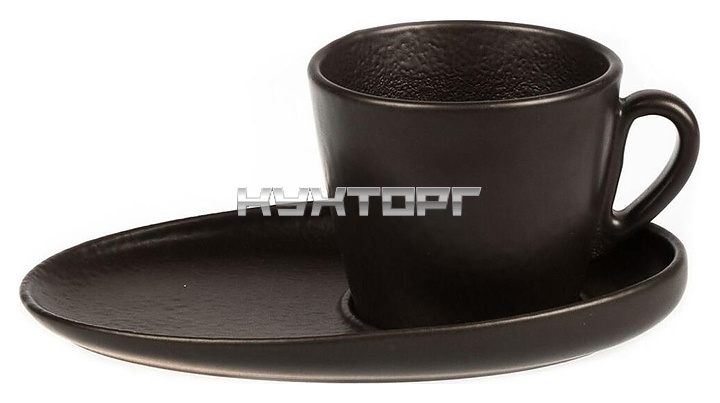 Кофейная пара P.L. Proff Cuisine Cappuccino Black Star 81223144 предназначена для профессионального использования в ресторанах. Набор состоит из кофейной чашки и блюдца с выемкой. Посуда изготавливается из фарфора.