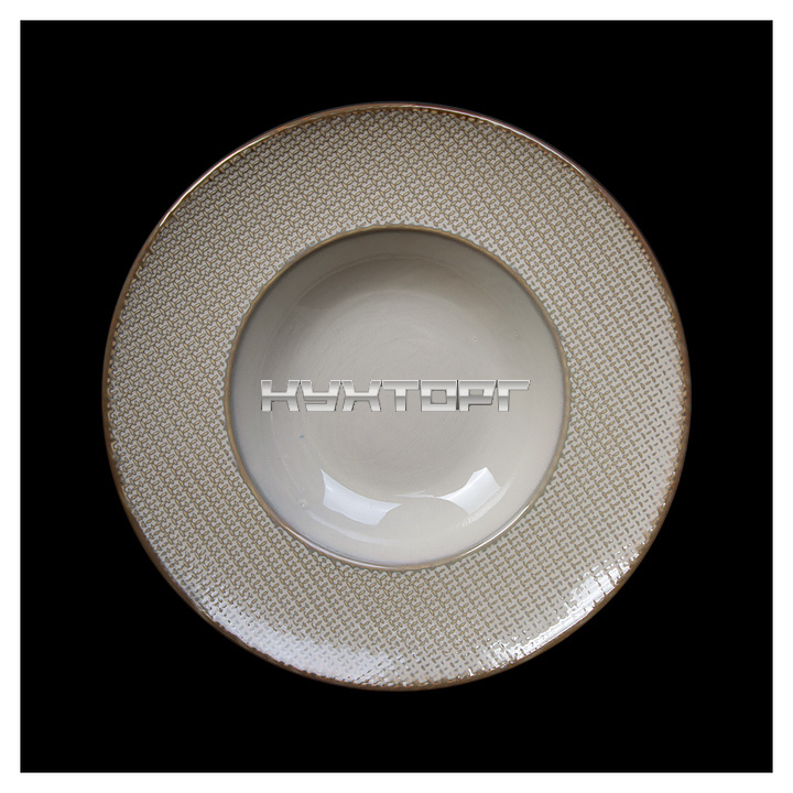 Тарелка для пасты Corone Alveare HS179468 предназначена для профессионального использования в ресторанах. Модель имеет круглую форму, окантовку цвета теплой сепии и уникальный декор, схожий с текстурой холста для живописи. Посуда изготавливается из профессионального прочного фарфора цвета льняного семени.
