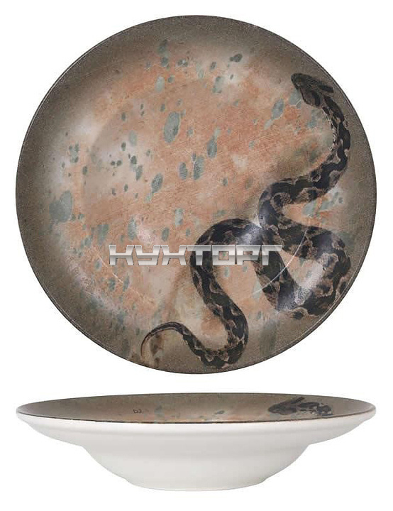- Тарелка украшена изображением змеи