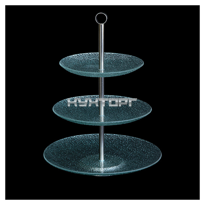 Этажерка Corone Aqua 8''/10''/11" предназначена для подачи в процессе сервировки стола хлебобулочных изделий, колбас, сыров, различных закусок и блюд на предприятиях общественного питания и торговли, а также в домашних условиях. Изделие серии премиум класса отличается стильным изысканным дизайном. Модель оснащена 3 ярусами с платформами круглой формы и кольцеобразной рукояткой для удобства транспортировки. Платформы выполнены из высококачественного структурированного полупрозрачного стекла голубого оттенка с гладкой верхней стороной, стойка – из металла с серебристой поверхностью.