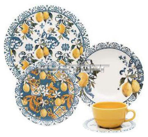 Мелкая тарелка Oxford AY02-5609 предназначена для профессионального использования на предприятиях общественного питания. Изделие имеет классическую круглую форму и уникальный декор с изображением лимонов в сицилийском стиле. Посуда изготавливается из высокопрочной керамики, устойчивой к сколам, механическим и термическим воздействиям.