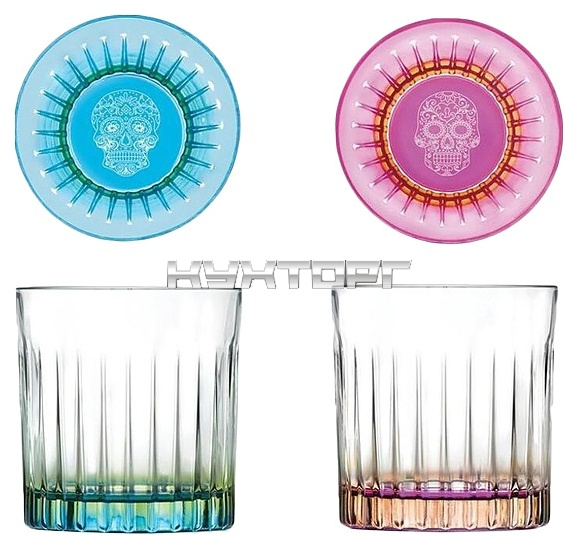 Набор из 6 стаканов Олд Фэшн RCR Cristalleria Pedro&Rosa 26537020006 используется на предприятиях общественного питания и в домашних условиях для подачи виски со льдом и других напитков. Емкости цилиндрической формы декорированы рельефом в виде вертикальных лучей на стенках и вдохновленными мексиканским символизмом изображениями узорных черепов на донышках. Изделия выполнены из высококачественного хрустального стекла с легкой цветной тонировкой основания и дна: 3 в комбинации зеленого и бирюзового и 3 – оранжевого и насыщенного розового тонов.