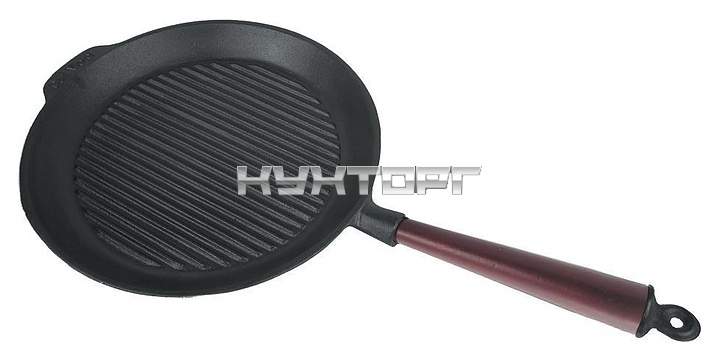Сковорода-гриль P.L. Proff Cuisine 99005809 используется на предприятиях общественного питания и торговли, в частных домах и квартирах для приготовления широкого спектра блюд. Сковорода выполнена из чугуна, ручка - из дерева.