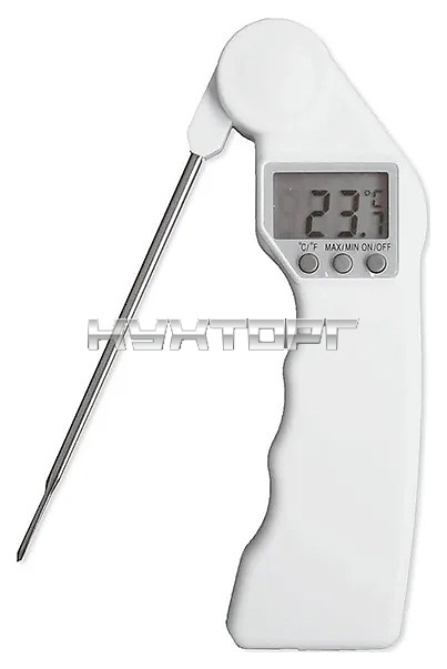 Цифровой термометр Paderno 49715-00 используется на предприятиях общественного питания и торговли для измерения температуры внутри приготовляемых продуктов и блюд.