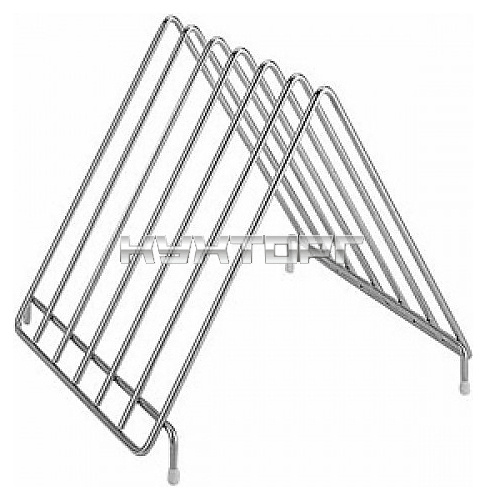 Подставка Paderno 4254200 предназначена для хранения разделочных досок на предприятиях общественного питания и торговли. Модель имеет треугольную форму и оснащена 4 ножками. Изделие выполнено из нержавеющей стали.