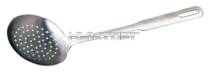 Шумовка Pujadas 342.000 используется на предприятиях общественного питания и торговли для съема накипи и пены с супов и других блюд, выемки мяса и рыбы из кипящей воды. Модель имеет удобную длинную ручку с отверстием для подвешивания. Изделие выполнено из нержавеющей стали.