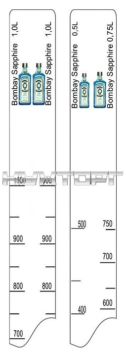 Барная линейка P.L. Proff Cuisine Bombay Sapphire (0,5/0,75/1 л) используется в барах, ресторанах и на других предприятиях общественного питания для измерения количества остатков напитков в откупоренных бутылках. Изделие выполнено из пластика.