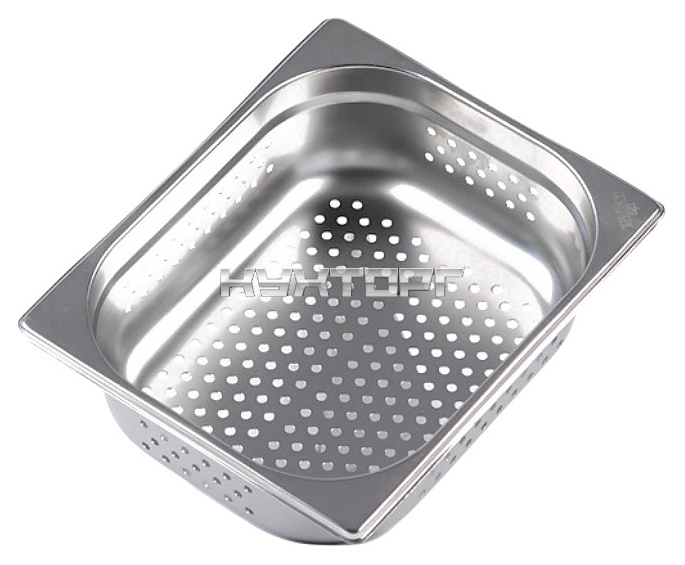 Перфорированная гастроемкость Foodatlas GN 1/2-100 предназначена для термической обработки продуктов на пару, бланширования, процеживания и сушки различных блюд на предприятиях общественного питания и торговли. Гастроемкость изготовлена из нержавеющей стали.