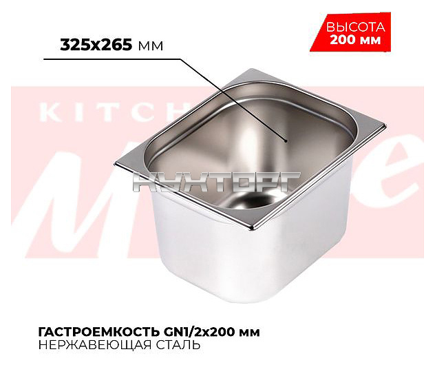 Гастроемкость Kitchen Muse 812-8 используется для демонстрации, заморозки, приготовления блюд, транспортировки и хранения продуктов в пароконвектоматах, конвекционных печах, расстоечных шкафах, холодильных и морозильных шкафах, столах и другом оборудовании на предприятиях общественного питания и торговли. Изделие выполнено из нержавеющей стали.