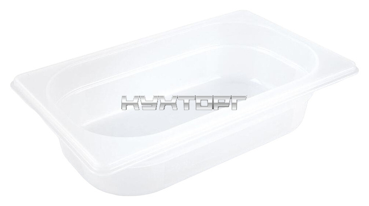 Гастроемкость P.L. Proff Cuisine 91001113 GN 1/3-100 используется на предприятиях общественного питания и торговли для приготовления широкого спектра блюд, заморозки, охлаждения и хранения продуктов в холодильных и морозильных шкафах, демонстрации готовых блюд на линиях раздачи, а также для транспортировки продуктов. Изделие выполнено из полипропилена.