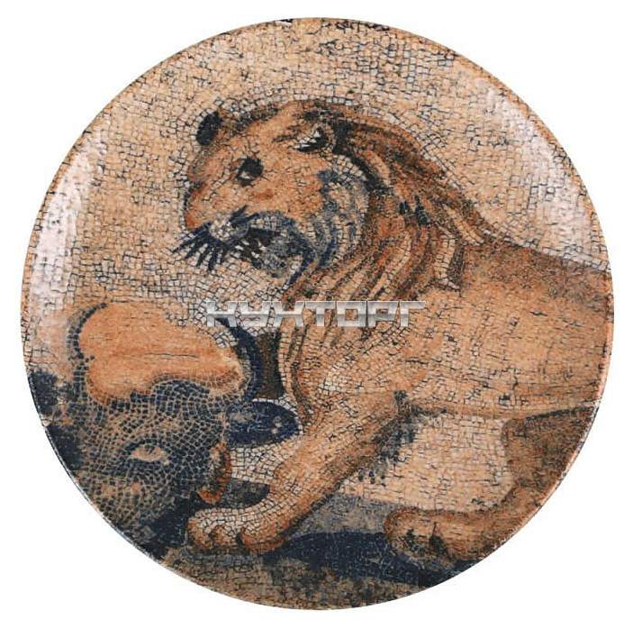 - Тарелка украшена изображением льва, который охотится за своей добычей