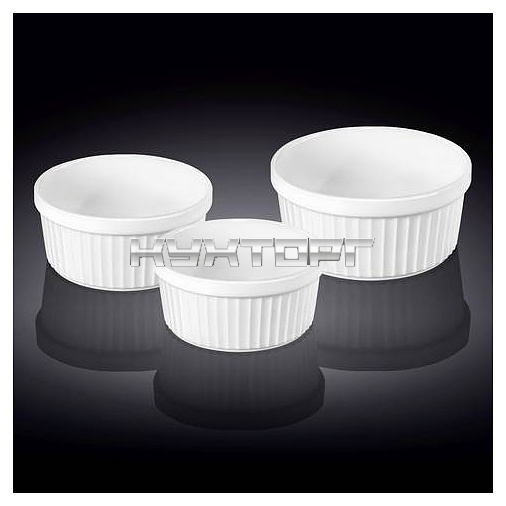 Набор из 3 рамекинов Wilmax WL-996122 / 3C отличается высокой прочностью, выдерживает значительные перепады температур, что позволяет использовать его в духовых шкафах, микроволновых печах и в посудомоечной машине. Изделия выполнены из высококачественного фарфора, покрытого двойным слоем глазировки.
