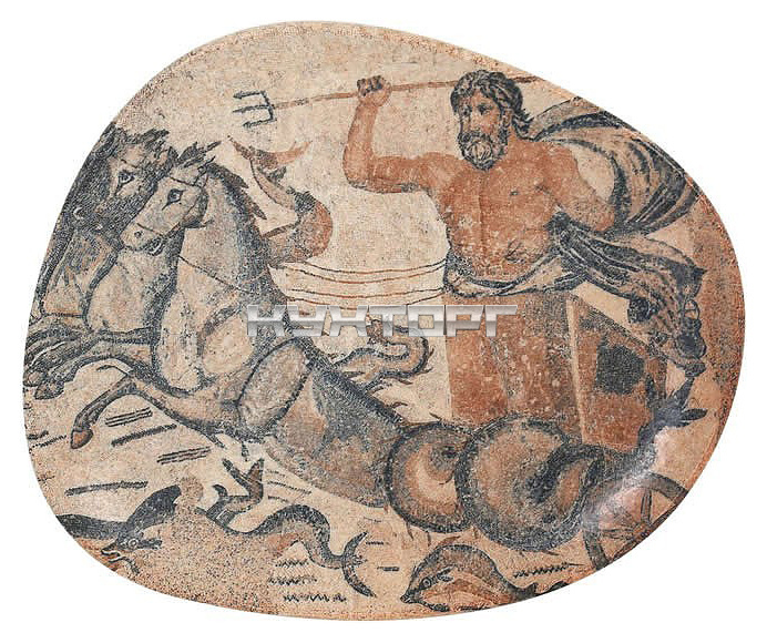 - Тарелка украшена изображением героя сцены из мифологических рассказов