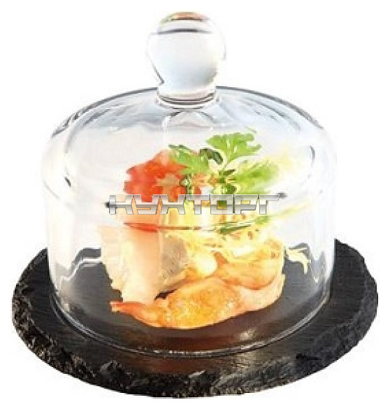 Блюдо для подачи APS 00984 предназначено для профессионального использования в ресторанах. Модель имеет круглую форму и оснащена прозрачной крышкой. Изделие выполнено из сланца.