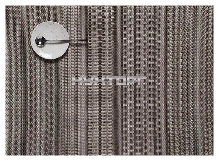 Сервировочная салфетка CHILEWICH Topaz 100409-002 серии MixedWeave Luxe используется на предприятиях общественного питания и в домашних условиях для размещения тарелок, столовых приборов, другой посуды и принадлежностей в процессе сервировки стола. Изделие прямоугольной формы выполнено методом переплетения виниловых волокон серебристо-серого цвета в плотную структуру с паттерном чередующихся полос с различными узорами.