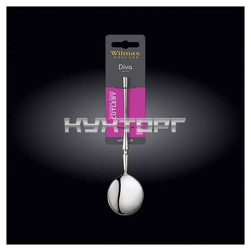 Суповая ложка Wilmax WL-999514 / 1B выполнена из высококачественной нержавеющей стали, что придает ей высокую прочность и длительный срок службы. Изделие имеет тщательно отполированную поверхность и подходит для мытья в посудомоечной машине. Упаковка - блистер.