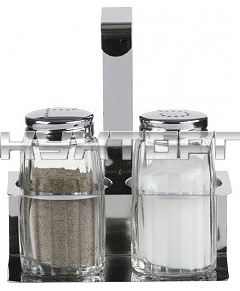В набор входят солонка, перечница и подставка.
