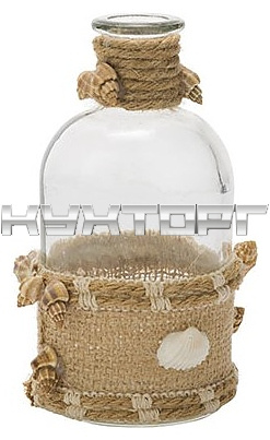 Ваза-бутылка Cosy & Trendy 467160 предназначена для профессионального использования на предприятиях общественного питания. Модель украшена ракушками в морском стиле. Ваза изготовлена из стекла.