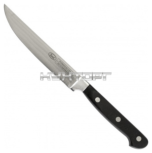 Нож ROAL PROFI KINGFIVE HL-F001-2 используется на предприятиях общественного питания и в домашних условиях для нарезки стейка. Модель оснащена лезвием с лазерной заточкой и рукояткой с ограничителями для стабильного безопасного захвата. Клинок выполнен из нержавеющей стали SS430, лезвие – из высококачественной нержавеющей стали SS 3Cr13, рукоятка с накладками из АБС-пластика черного цвета на 3-точечном креплении.