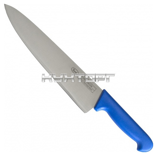 Шеф-нож ROAL HL-P630-1 используется на предприятиях общественного питания и в домашних условиях для нарезки и измельчения пищевых продуктов. Модель оснащена широким нисходящим клинком и рукояткой обтекаемой формы с ограничителями для стабильного безопасного захвата. Клинок выполнен из высококачественной нержавеющей стали (3Cr13), рукоятка – из пластика синего цвета.