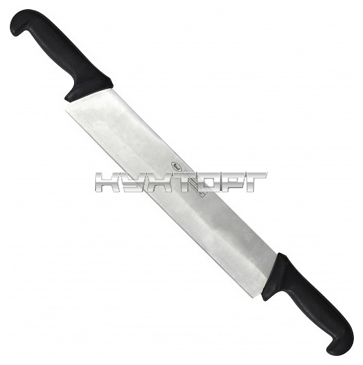 Нож ROAL PROFI KINGFIVE HL-P025-1 используется на предприятиях общественного питания и в домашних условиях для нарезки сыра. Модель оснащена прямым лезвием с лазерной заточкой и 2 рукоятками с ограничителями для стабильного безопасного захвата. Клинок выполнен из нержавеющей стали SS430, лезвие – из высококачественной нержавеющей стали SS 3Cr13, рукоятки – из АБС-пластика черного цвета.
