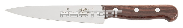 Поварской нож Victorinox 5.2000.15 Rosewood используется для нарезки овощей, зелени и других продуктов на предприятиях общественного питания и в домашних условиях. Модель оснащена лезвием с прямой режущей кромкой и острым клиновидным наконечником. Клинок выполнен из высококачественной мартенситной нержавеющей стали с полированной поверхностью, рукоятка – из прочной модифицированной древесины в коричневых тонах.