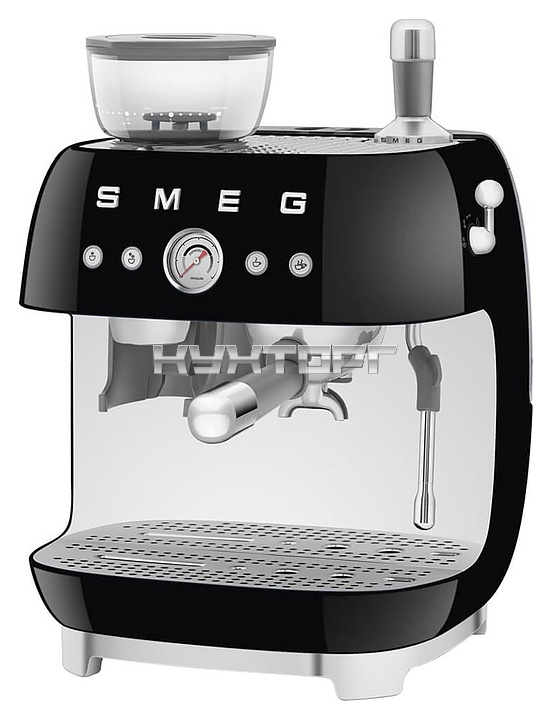 Рожковая эспрессо кофемашина SMEG EGF03BLEU предназначена для приготовления кофе эспрессо и напитков на его основе в офисах, гостиницах и домашних условиях. Модель оснащена кабелем питания с евровилкой (Shuko) и панелью управления с нажимными кнопками. Корпусы прибора и основания подставки для чашек обтекаемой формы выполнены из литого алюминия с внешним глянцевым покрытием черного цвета, бойлер, жернова, трубка подачи горячей воды / пара, подогреватель и поддон для чашек, питчер, фильтры, корпусы темпера и холдера – из нержавеющей стали, рычаг подачи пара – из сплава цинка, резервуар для воды с крышкой и контейнер для зерен – из сополимера стирола и акрилонитрила (SAN), крышка контейнера для зерен с интегрированной ручкой – из термопластичного элестомера (TPE), рукоятки холдера и темпера – из серого пластика.