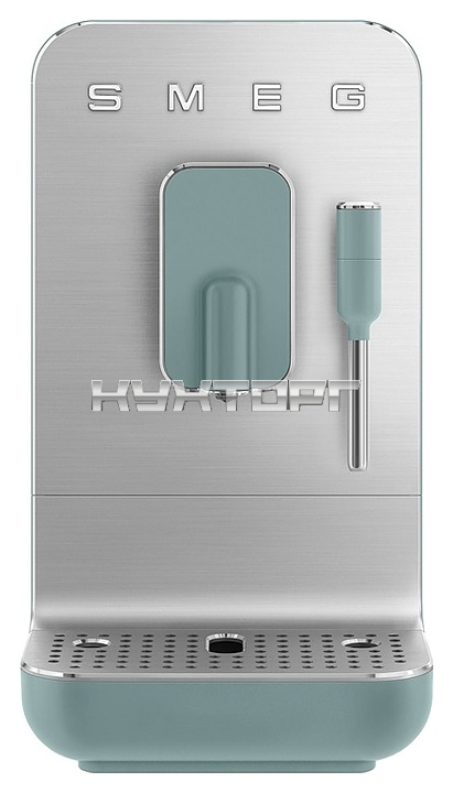 Автоматическая эспрессо кофемашина SMEG BCC02EGMEU предназначена для приготовления кофе эспрессо и напитков на его основе в гостиницах, офисах и домашних условиях. Модель оснащена кабелем питания с евровилкой (Shuko) и панелью управления с нажимными кнопками. Корпусы прибора и основания подставки для чашек, фронт диспенсера, рукоятка трубки подачи и кнопки выполнены из пластика с внешней поверхностью изумрудно-зеленого оттенка, фронтальная панель и поддон для чашек – из алюминия с сатинированной поверхностью и полированной кромкой, объемные накладные литеры логотипа – из пластика с серебристой поверхностью, бойлер, трубка подачи горячей воды / пара – из нержавеющей стали, резервуар для воды – из сополимера стирола и акрилонитрила (SAN) дымчатого оттенка, корпус диспнсера и рукоятка резервуара – из серого пластика, изоляция кабеля серого цвета.