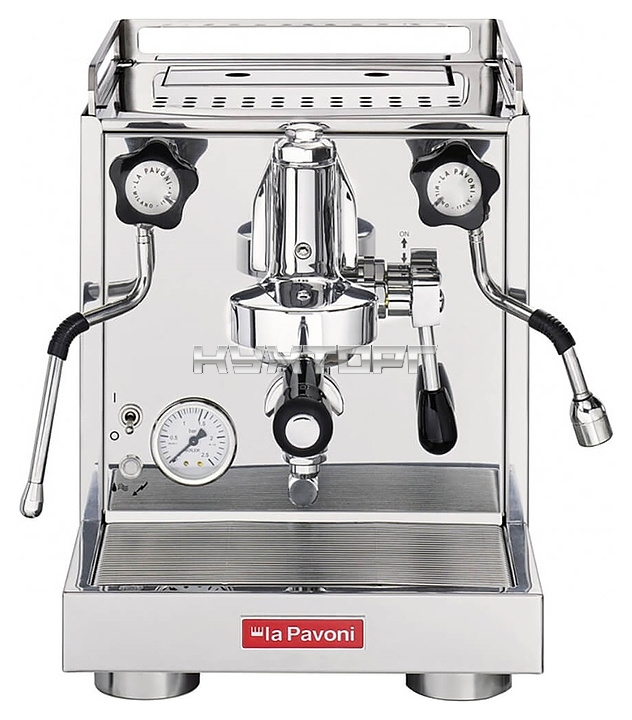 Полуавтоматическая рожковая эспрессо кофемашина La Pavoni LPSCCS01EU серии Cellini используется для приготовления кофе и напитков на его основе в домашних условиях. Модель оснащена вибрационной помпой, капучинатором в виде поворотной трубки с паровой насадкой, поворотной трубкой подачи горячей воды, подставкой для чашек, кабелем питания с евровилкой и расположенной на фронтальной стенке электромеханической панелью управления с рычажной рукояткой и 2 поворотными регуляторами. Корпус прямоугольно ориентированной формы, крышка резервуара и цилиндрические опоры выполнены из нержавеющей стали с полированной серебристой поверхностью, бойлер – из латуни и меди, заварочный блок – из латуни с хромированной поверхностью, поддон каплесборника, ручки рычага и регуляторов – из черного пластика, трубки подачи пара и горячей воды – из нержавеющей стали, решетка подставки – из стали.