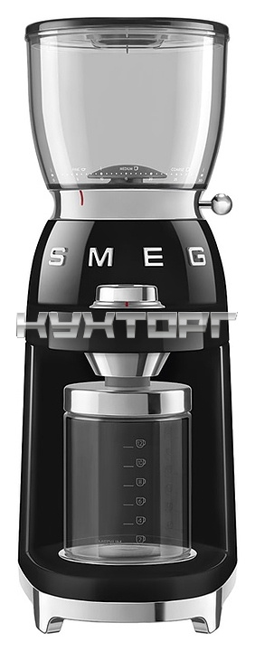 Кофемолка SMEG CGF11BLEU предназначена для приготовления молотого кофе из зерен в гостиницах, офисах и домашних условиях. Модель оснащена интегрированной подставкой для емкости с готовым продуктом, кабелем питания с вилкой и электромеханическим управлением. Корпус выполнен из нержавеющей стали с глянцевым внешним покрытием черного цвета и накладными объемными серебристыми литерами логотипа, жернова – из нержавеющей стали, рукоятка рычага – из стали SUS304 с серебристой поверхностью, основание, регулировочная ручка, крышка контейнера – из пластика с хромированной поверхностью, бункер и контейнер – из высокопрочного полимера Tritan Renew без содержания вредных компонентов, крышка бункера, подставка для холдера (держателя фильтра) и щетка – из пластика, изоляция кабеля серого цвета.