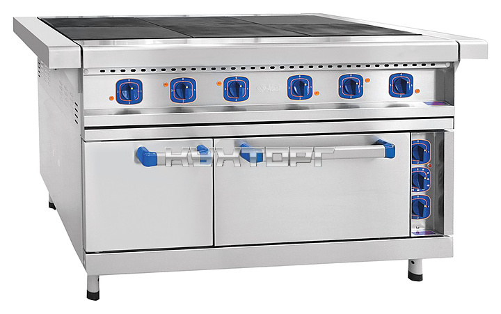 напольная; духовой шкаф; 6 конфорок; чугунная конфорка; от 20 до 270 °С; 380 В |