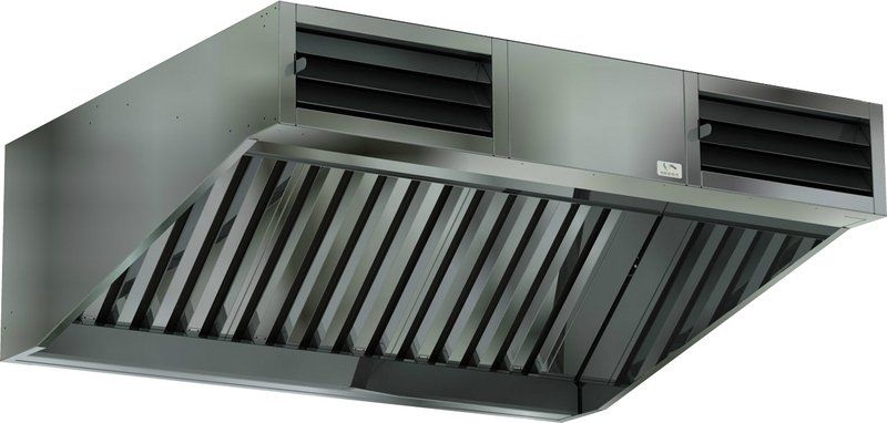 Вытяжной зонт Кобор ЗППВ-90/100 предназначен для очистки воздуха от жира, масла, дыма и водяного пара на предприятиях пищевой промышленности, общественного питания и торговли, в пекарнях и кондитерских. Прибор подключается к вытяжной вентиляционной системе и устанавливается над тепловым оборудованием. Зонт состоит из корпуса и съемных лабиринтных фильтров, которые легко чистятся. Оборудование оснащено сливным каналом, по которому масло стекает в накопительные жиросборники.
